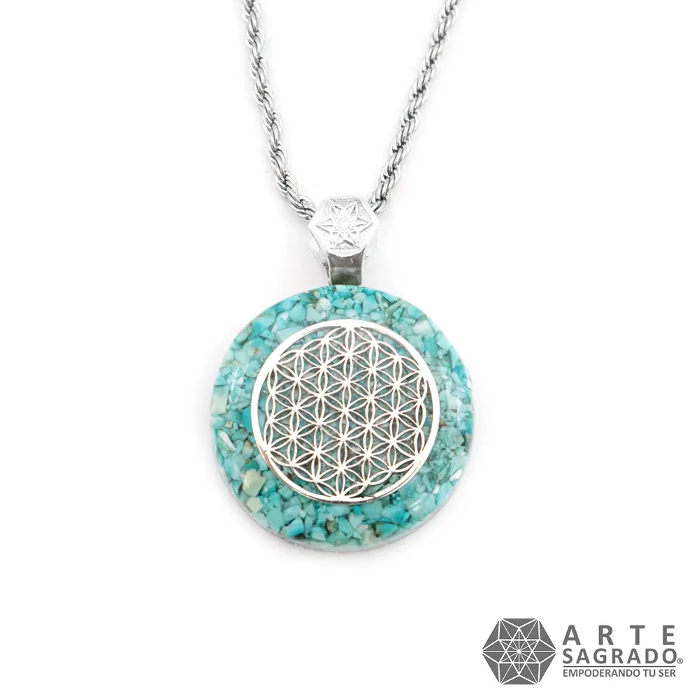 Mini Orgone Flower of Life Necklace in 0.925 Silver with Turquoise