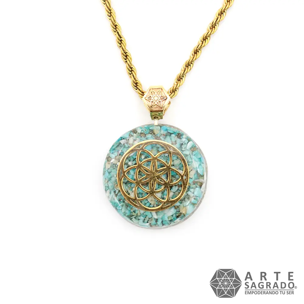Mini Seed of Life Orgone Necklace in 14K Gold Plating with Turquoise