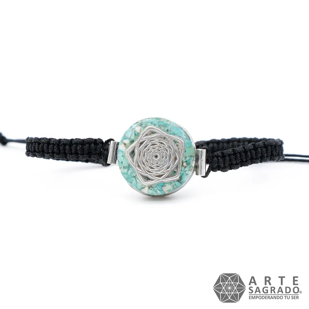Micro Orgone Bracelet Flower of Life in 0.925 Silver with Turquoise