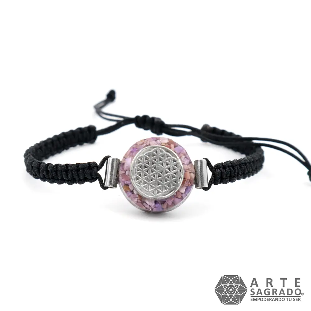 Pulsera Micro Orgón Flor de la Vida en Plata 0.925 con Ágata Morada y Amatista