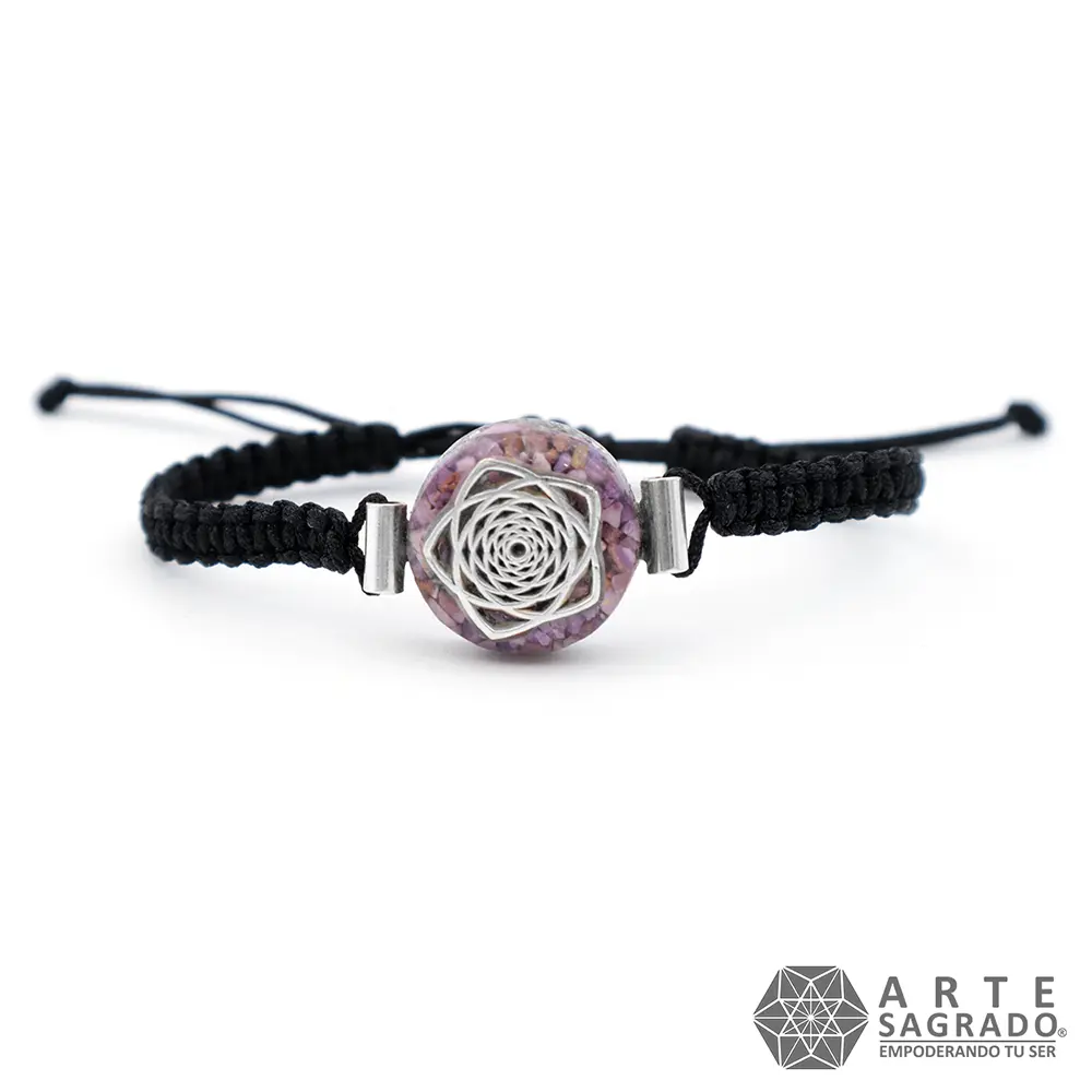 Pulsera Micro Orgón Pentaflor en Plata 0.925 con Ágata Morada y Amatista
