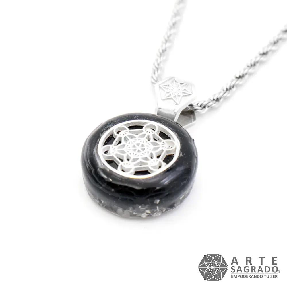 Collar Micro Orgón Arcangel Metatrón en Plata 0.925 con Turmalina Negra