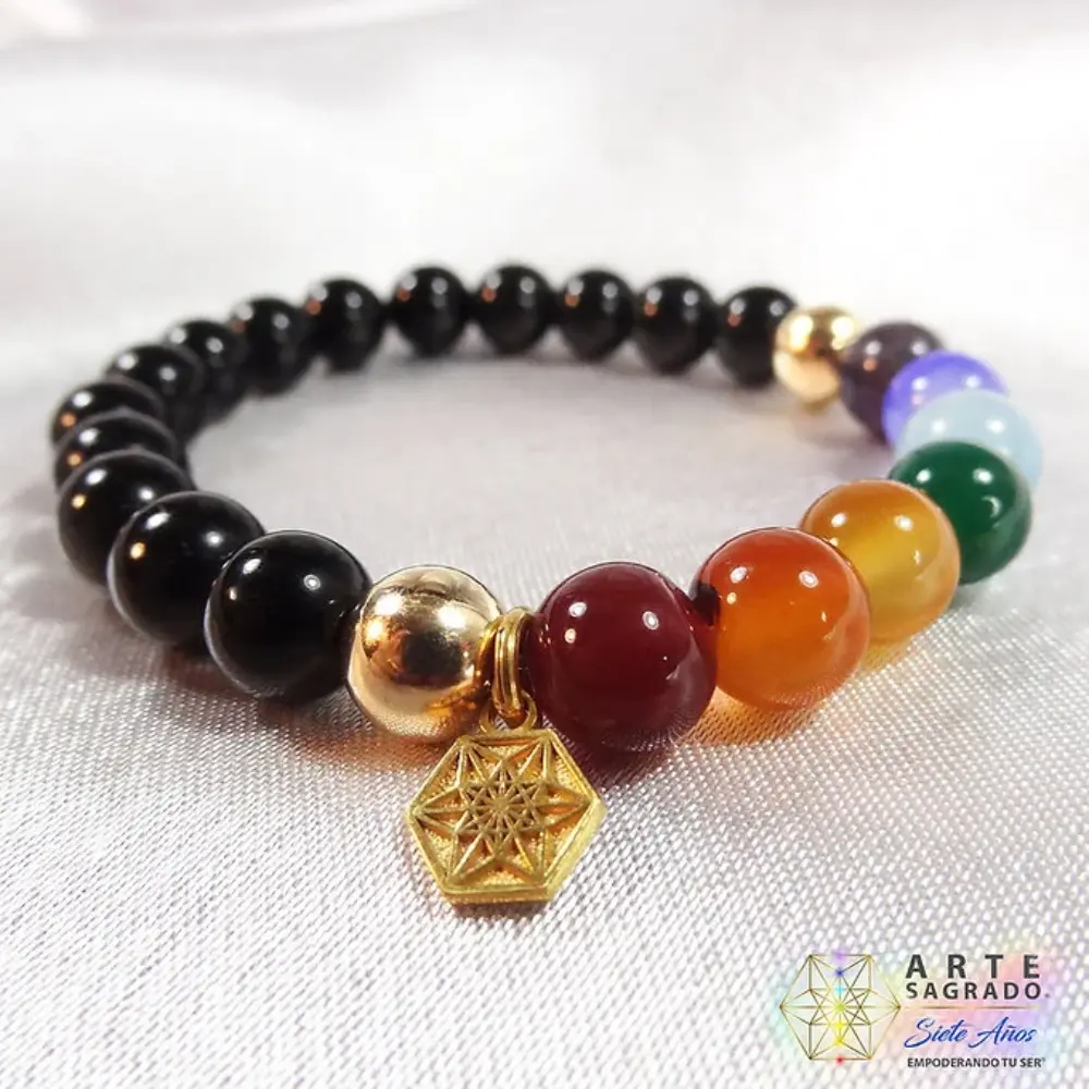 Pulsera 7 Chakras con Ágatas de colores, Obsidiana Negra o Ágata Blanca