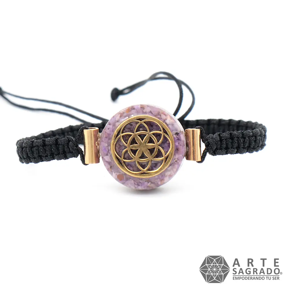 Pulsera Micro Orgón Semilla de la Vida en Plata 0.925 con Ágata Morada y Amatista
