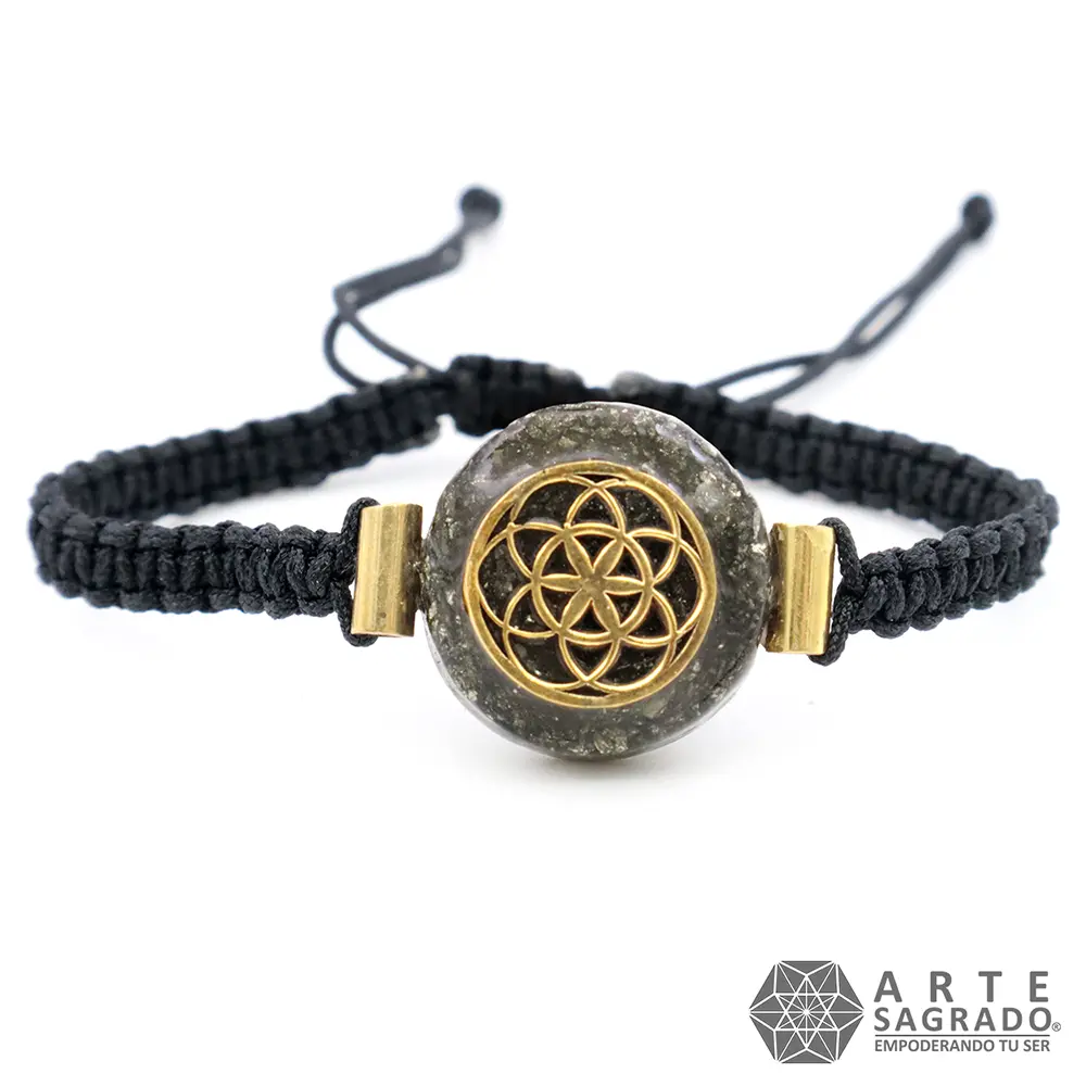 Pulsera Micro Orgón Semilla de la Vida en Plata 0.925 con Pirita